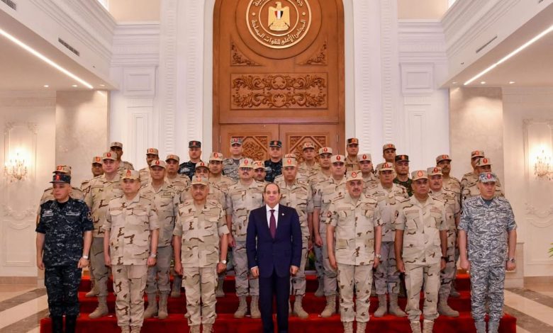 وأشاد بما تبذله القوات المسلحة من جهود لدعم ركائز الأمن والإستقرار على كافة الإتجاهات الإستراتيجية. كما تناول الاجتماع عدداً من الموضوعات في ضوء ما تشهده الساحتان الدولية والإقليمية من متغيرات ومدى إرتباط ذلك بالأمن القومي المصري.