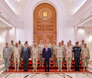 وأشاد بما تبذله القوات المسلحة من جهود لدعم ركائز الأمن والإستقرار على كافة الإتجاهات الإستراتيجية. كما تناول الاجتماع عدداً من الموضوعات في ضوء ما تشهده الساحتان الدولية والإقليمية من متغيرات ومدى إرتباط ذلك بالأمن القومي المصري.