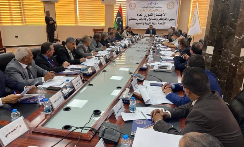 كما ناقش الاجتماع دور المتابعة في رفع الوعي وتفعيل التشريعات المنظمة للعمل الإداري والتربوي، إلى جانب بحث آليات سد العجز، وأوضاع المدارس الليبية في الخارج، وآليات عملية جرد المؤسسات التعليمية.
