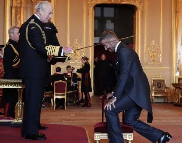 منح الملك تشارلز الثالث لاعب كرة القادم ديفيد بيكهام على وسام الإمبراطورية البريطانية .تقديرا لإسهاماته في الرياضة، وبذلك يصبح السير ديفيد بيكهام .