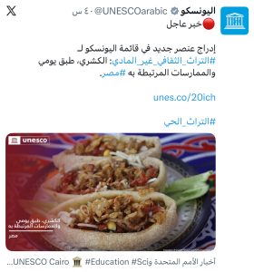 اليونسكو تدرج الكشري المصري في قائمة التراث الثقافي غير المادي