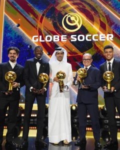 أعلنت في الأمارات مساء اليوم جوائز جلوب سوكر لعام 2025 حيث حصد اللاعب الفرنسي عثمان ديمبيلي جائزة افضل لاعب في العالم بينما حصل اللاعب البرتغالي كريستيانو رونالدو على جائزة افضل لاعب في الشرق الأوسط في حين حصل اللاعب الإسباني لامين يامال على جائزة أفضل مهاجم .