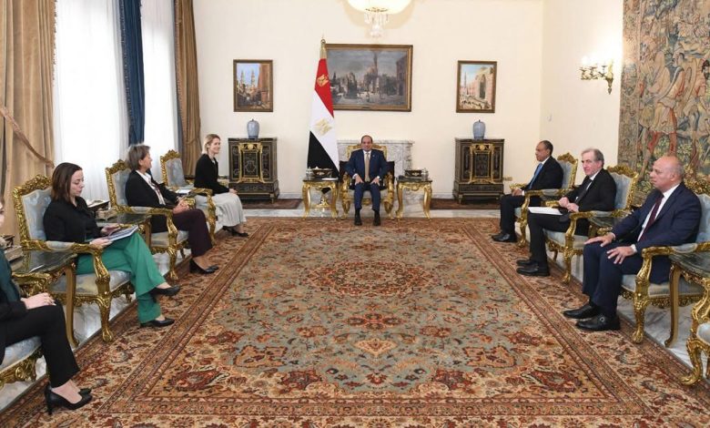 وفي السياق ذاته، أكد السيد الرئيس ضرورة تعزيز العلاقات التجارية والاستثمارية بين مصر والاتحاد الأوروبي، في ضوء الفرص الواعدة المتاحة للاستثمار في مصر، بما يحقق مصالح مشتركة للطرفين. وقد أعربت المسؤولة الأوروبية عن تطلع الاتحاد الأوروبي إلى مواصلة تطوير التعاون الاقتصادي، بما يفتح آفاقاً أرحب للعلاقات الثنائية، فضلاً عن استمرار التنسيق في الملفات السياسية ذات الاهتمام المتبادل، مثمنة الدور الفاعل الذي تضطلع به مصر في إرساء السلام والاستقرار بالمنطقة، معربة في ذات السياق عن تطلع الاتحاد الأوروبي لبدء أول حوار بين مصر والاتحاد الأوروبي في مجالات الأمن والدفاع في مارس ٢٠٢٦.