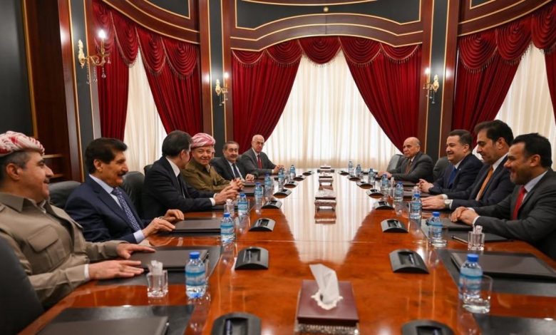 اجتمع الزعيم الكوردي مسعود بارزاني، اليوم الاثنين، في بيرمام، مع وفد رفيع المستوى من الإطار التنسيقي، ضمّ السيد محمد شياع السوداني، رئيس ائتلاف الإعمار والتنمية، والسيد هادي العامري، الأمين العام لمنظمة بدر، والسيد محسن المندلاوي، رئيس ائتلاف الأساس، والسيد عباس راضي، الأمين العام للإطار التنسيقي.
