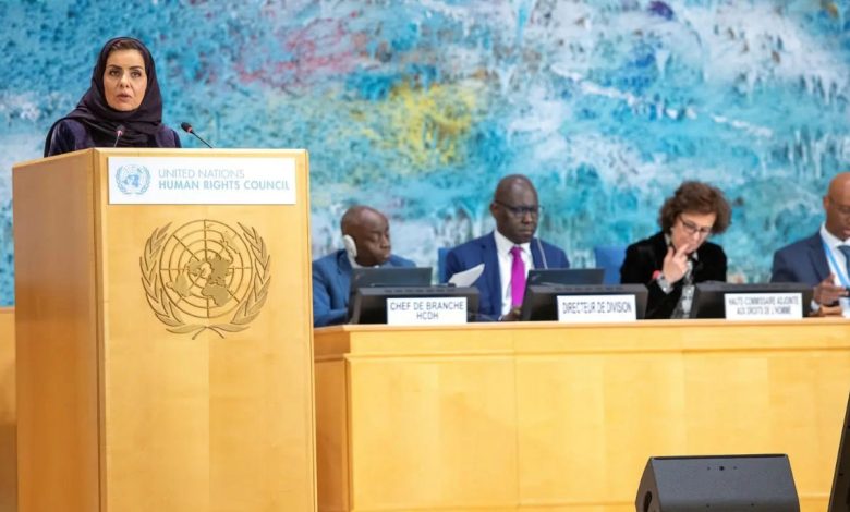 وقالت في كلمة المملكة أمام المجلس: “إن المملكة تثمن نبل أهداف مجلس حقوق الإنسان، وتؤكد أهمية تحقيقها على أرض الواقع من خلال التعاون المشترك”.