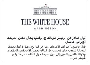 البيت الأبيض ينشر بيانا يؤكّد فيه مقتل خامنئي