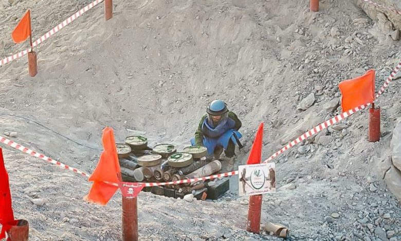 نفذت فرق الطوارئ التابعة لـمشروع «مسام» لنزع الألغام – اليمن بالتعاون مع المركز التنفيذي للتعامل مع الألغام فرع المكلا “الخميس” عملية اتلاف 926 قطعة من الألغام والمخلفات الحربية.