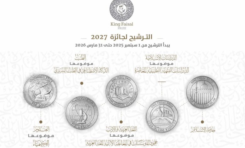 يُعدّ الحادي والثلاثون من شهر مارس الجاري الموعد النهائي لاستقبال طلبات الترشح لنيل جائزة الملك فيصل في دورتها التاسعة والأربعين لعام 2027، وذلك تمهيدًا لانطلاق أعمال لجان الفرز والتحكيم الدولية المختصة بمختلف فروع الجائزة.