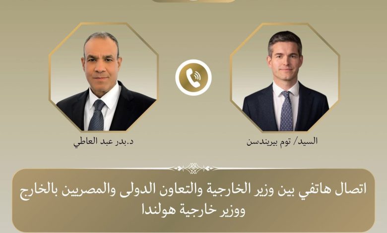جرى اتصال هاتفى بين وزير الخارجية المصري بدر عبد العاطي و”توم بيريندسن” وزير خارجية هولندا اليوم الخميس لبحث العلاقات الثنائية ومستجدات الأوضاع في المنطقة.