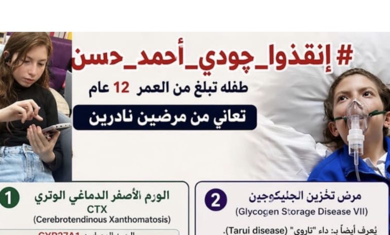 في واحدة من أكثر القصص الإنسانية إيلامًا، تعيش طفلة مصرية تبلغ من العمر 12 عامًا معاناة يومية بعد تشخيصها بمرض نادر للغاية يُعرف باسم CTX – Cerebrotendinous Xanthomatosis، وهو مرض وراثي نادر يصيب أعدادًا محدودة جدًا حول العالم، ويُعد ظهوره في مصر من الحالات النادرة للغاية، وسط تأكيدات بأنها من أوائل الحالات التي تم رصدها محليًا، ومن بين عدد قليل جدًا في منطقة الشرق الأوسط.
