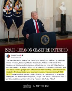 أعلن الرئيس الأميركي دونالد ترامب عبر منصة تروث سوشيال عن تمديد وقف إطلاق النار بين لبنان وإسرائيل قائلا :