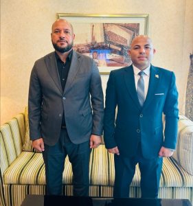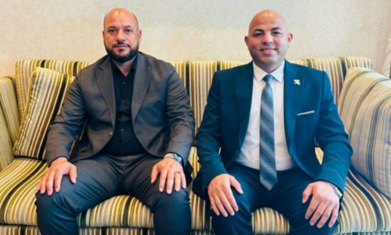المهندس هيثم حسين رئيس مجلس مجمع عمال مصر يستقبل وزير الصناعة الليبي بشأن إنشاء مشروع مدينة عمر المختار الإقتصادية المستدامة في ليبيا لاطلاق المشروع في حفل عيد العمال ببنغازي برعايه وزارة العمل